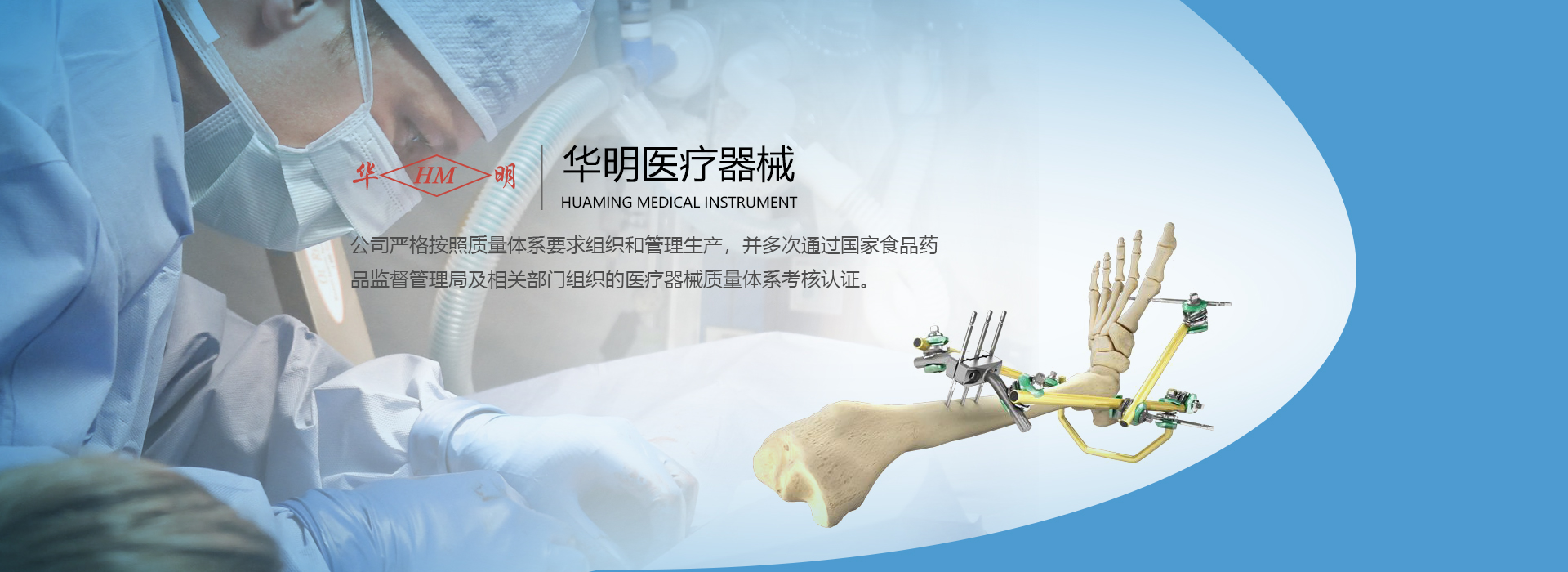 張家港華明醫療器械有限公司是一家集研發、生產、營銷于一體的專業的骨科醫療器械企業.主要生產骨科外固定支架和骨牽引針等“華明”系列產品。公司嚴格按照質量體系要求組織和管理生產,并多次通過國家食品藥品監督管理局及相關部門組織的醫療器械質量體系考核認證。